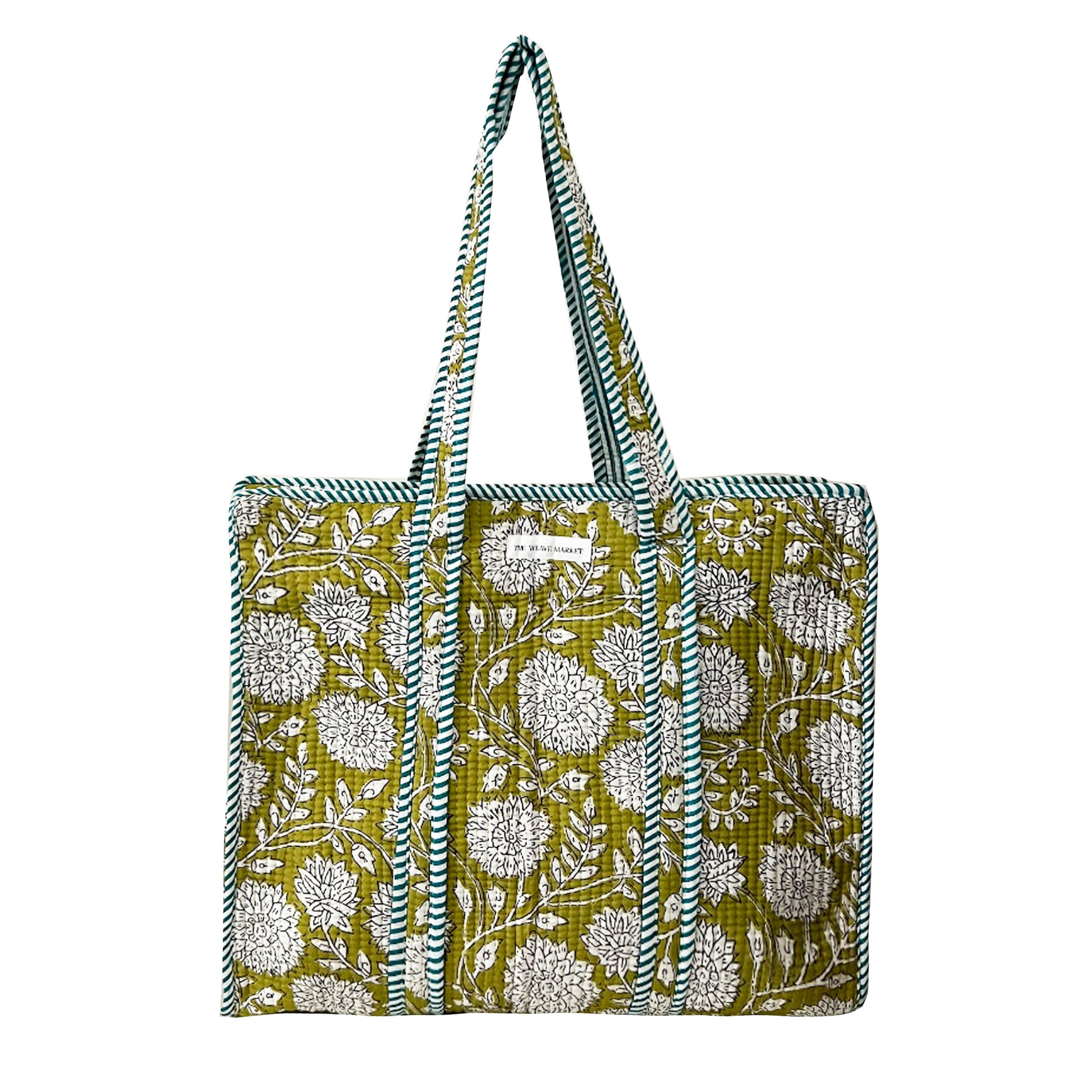 Add a touch of calm and class to your day with our Flora Folk - Tote Bag. A soft, hand block-printed beauty that brings together artistic expression and practical design. With its elegant floral motif on a quilted neutral base, this handmade cotton tote bag offers the perfect balance of sophistication and everyday versatility.