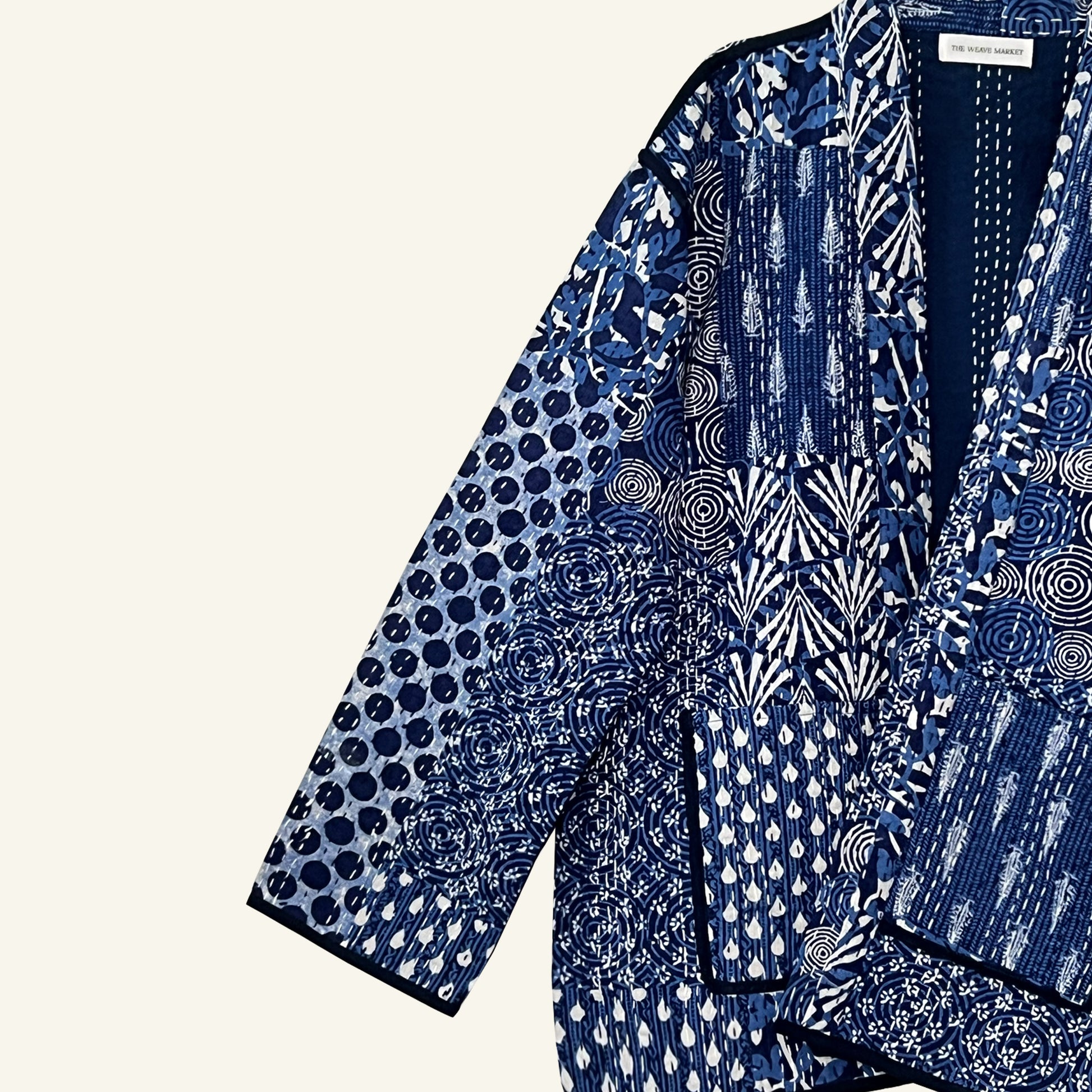 As each jacket is hand-block printed, slight variations in pattern alignment and placement may occur. This makes every piece unique and a true reflection of artisanal craftsmanship. The product you receive may differ slightly from the images displayed.