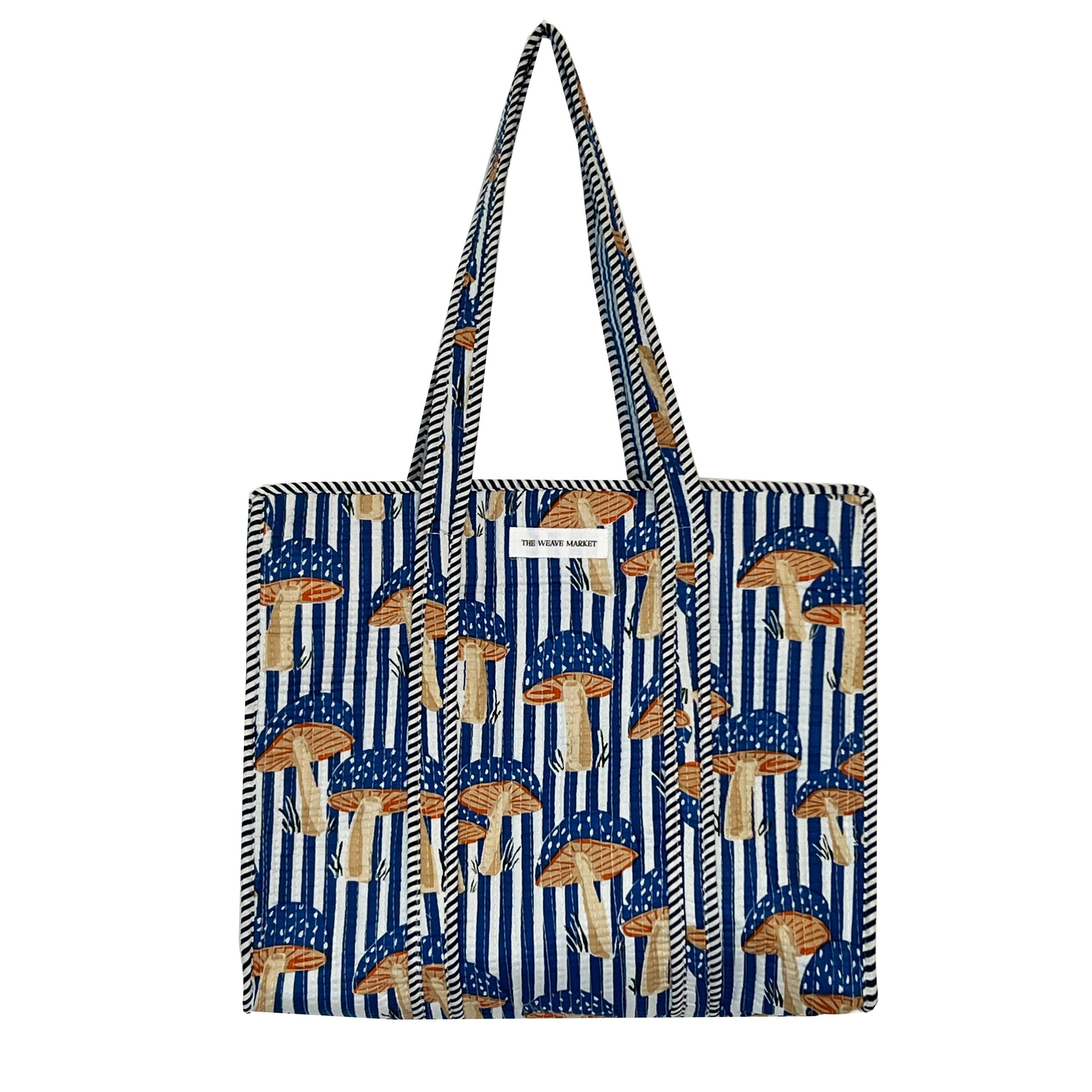 Add a touch of calm and class to your day with our Shroomé - Tote Bag. A soft, hand block-printed beauty that brings together artistic expression and practical design. With its elegant floral motif on a quilted neutral base, this handmade cotton tote bag offers the perfect balance of sophistication and everyday versatility.
