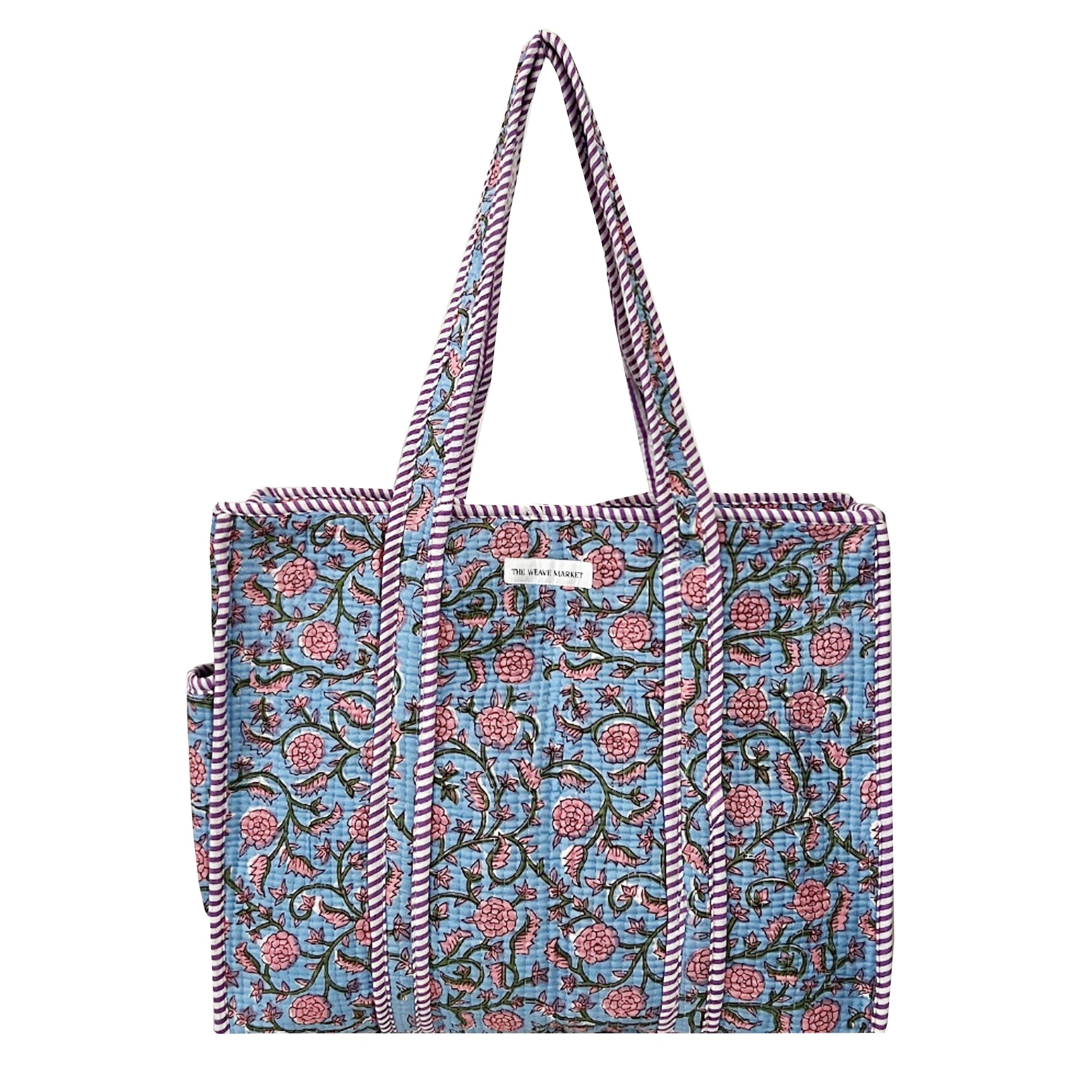 Add a touch of calm and class to your day with our Wild Flower - Tote Bag. A soft, hand block-printed beauty that brings together artistic expression and practical design. With its elegant floral motif on a quilted neutral base, this handmade cotton tote bag offers the perfect balance of sophistication and everyday versatility.